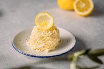 ふわふわエスプーマが可愛いコリラックマのいちごパスタです。エスプーマの下に隠れているツナ・野菜・いちご入りのパスタは、いちごの風味と爽やかなレモンペッパーオイルのペアリングを楽しめます。