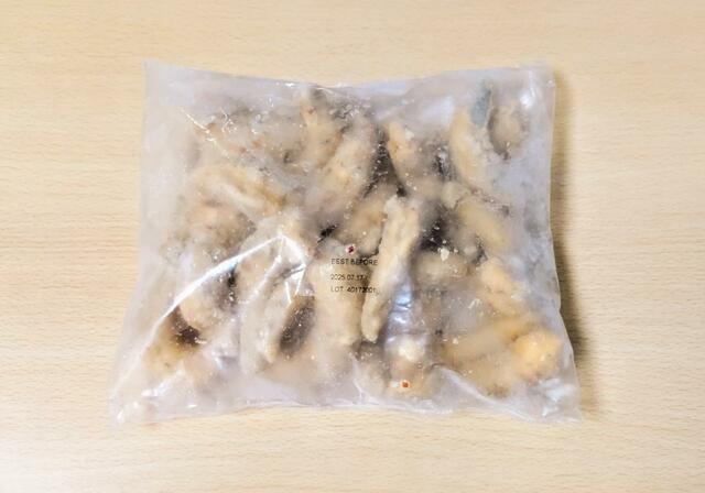 コストコの冷凍食品売り場には、魚貝類の商品も揃っています。こちらの「韓国産 粒かき」がそのひとつ。