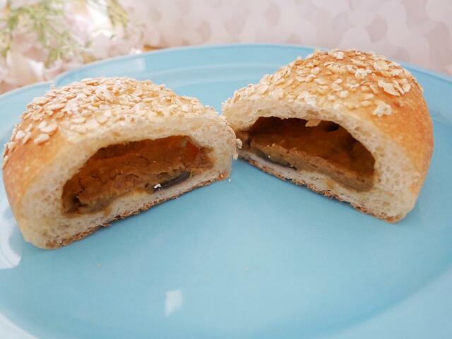 先述したカレーパンと比較すると『ベジタブルカレーパン』のほうは、具の個体が目視できるくらい残されていて、噛むたびに野菜の旨味が口いっぱいに広がります。