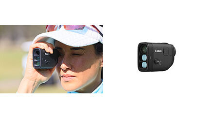 「PowerShot GOLF」は、コースの勾配を考慮した実際に打つべき距離である加減算距離を測定できるスロープ補正機能や、快適にターゲットに照準を合わせることが可能な手ブレ補正機能を搭載したゴルフ距離計。