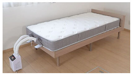 「布団乾燥機を使って除湿も温めも出来るマットレス」は、側面に布団乾燥機の接続が可能な挿入口を搭載し、内部にまで熱を伝えられるので、通常の布団乾燥機では対策が困難だった内部のトコジラミやダニ対策の効果が期待できる。また、布団乾燥機の送風機能によって、内部に溜まった湿気による蒸れやカビを防げるほか、温風機能で就寝前にマットレス本体を温められるなど、布団乾燥機の各種モードが使える。