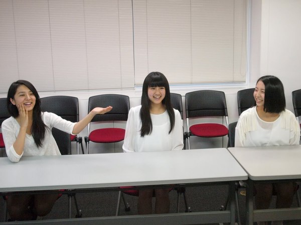 ではここで、お待ちかねのインタビューをどうぞ。今回のご登場は、リーダーの高嶋菜七さん(なな)、半年ぶりの公演となった「1×0」エピソード3の主役を務めた櫻井紗季(いさき)さん、浜崎香帆(かほ)さんの3人です。マジメに演劇を語ったり、リラックスした雰囲気で裏話を語ってくれたりと、かなり濃密なインタビューになりました。まずは「1×0」エピソード3についての部分から。