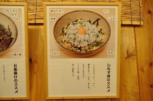 まずはしらす丼、そば、お茶漬けの「ススメ」にあるトッピングでいただくとしよう。