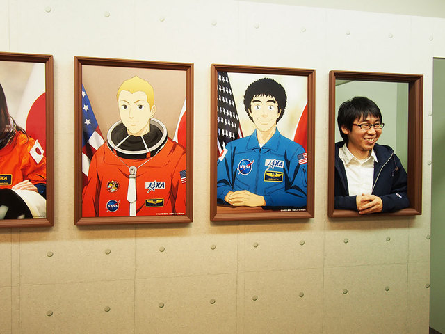 作中でJAXAの職員・星加が「ようやく並びましたね この兄弟」と言った、宇宙飛行士の写真が並ぶ壁についに六太の写真が飾られた名シーンがフォトスポットとして登場しており、六太の隣で小山先生も撮影。日々人の隣には実際の宇宙飛行士の若田光一さんと山崎直子さんの写真が並んでいます。