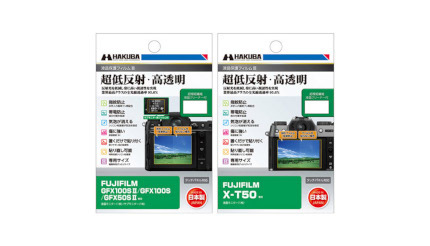 ハクバ写真産業(ハクバ)は、業界最高クラスの超低反射・高透明さをもつデジタルカメラ用液晶保護フィルムにFUJIFILM「GFX100S II」用と「X-T50」用の2製品を追加し、6月6日に発売した。