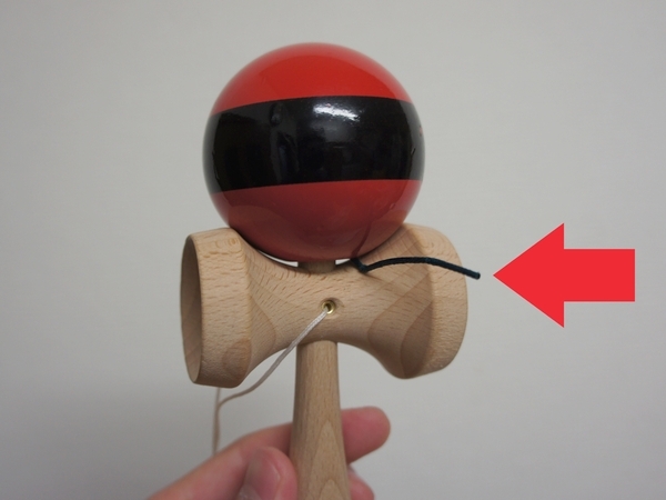 玉を振り上げたと同時にヒモを高速でけんに絡ませ、最後に玉を刺すという技です。