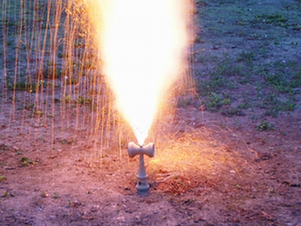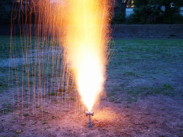 しかし、玉から導火線が出ているだけでは何が起こるかは予測できませんよね。ということで、とりあえず導火線に火を着けてみると…。