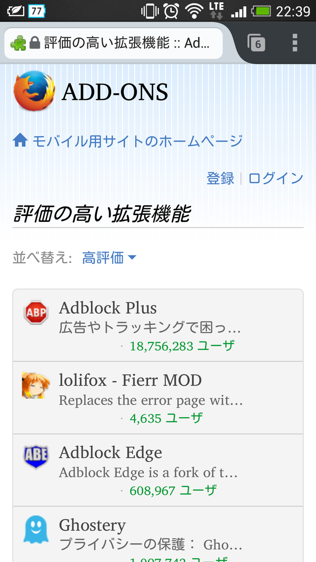 パソコン版でも人気の「Firefox」のスマホ版。残念ながら現在のところAndroid版のみとなっている。