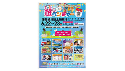 「Let's遊ビバ」(運営:azzurro)は6月22日・23日に、入場料のみで会場内のキッズコンテンツがすべて遊び放題となる初の試みとして、「Let's遊ベンチャー」を服部緑地公園陸上競技場(大阪府豊中市)にて開催する。入場料は2000円で、2歳以下は無料。