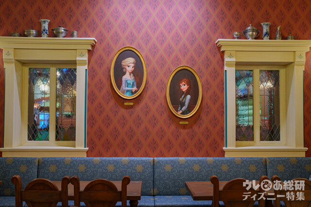 壁にはアナやエルサが幼い頃の家族写真や、アレンデール王国周辺の地図、先代アグナル王の戴冠式の様子などが飾られています。