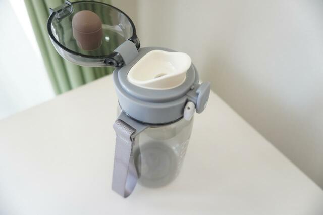 まず、ボトルのふたをロックできるのがポイント。ボトルが倒れても中の飲み物がこぼれてしまう心配がありません。