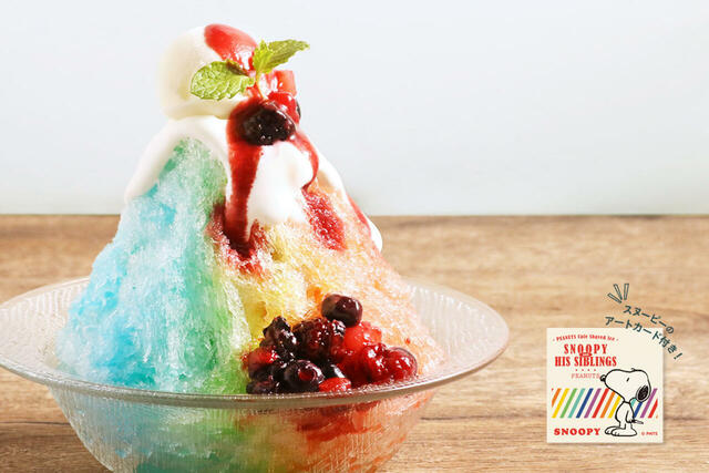 今年はベル、オラフ、スパイクなど、コミック「PEANUTS」に登場するスヌーピーのきょうだいたちをモチーフに、それぞれのイメージを表現したカラフルなかき氷が用意されました。