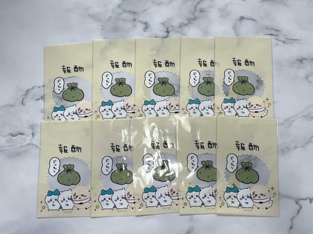 筆者のイチオシは、報酬袋デザインの「ちいかわ、ハチワレ、ラッコ」のもの。