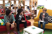 今回の社員ゲストは担当の加藤(真ん中)。まずはセブ山(右)が、オモトピアの前メディアである『バーグハンバーグ通信』との違いを加藤に聞きます。