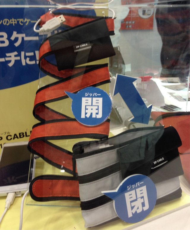 ポーチのジッパーを外していくと、ポーチが丸裸……じゃなくて、長い~い1本のケーブルに変身。