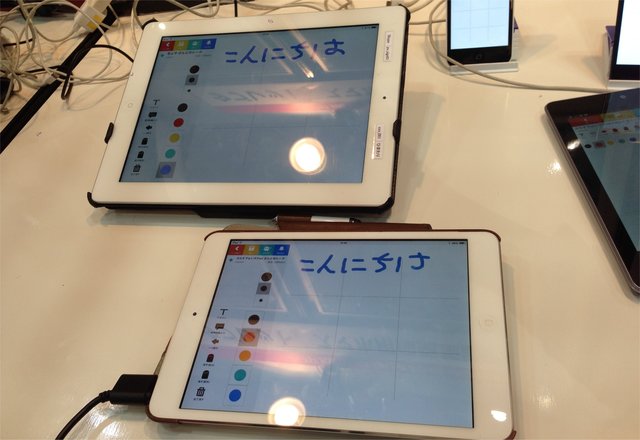 タブレットやスマホに直接手書きして送信すると、相手のアプリに手書き文字がそのまま表示されます。
