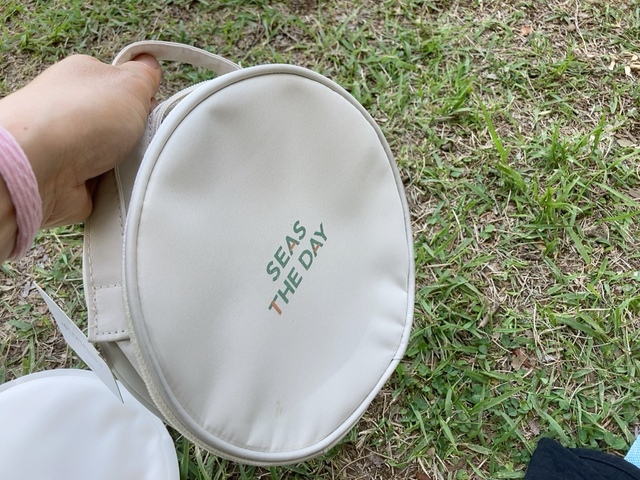持ち手がついているので、カラビナでバッグに引っ掛けたりもできますよ♪