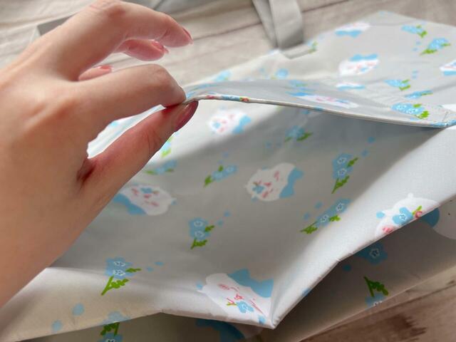 トートバッグのデザインは、キュートなハチワレとお花の総柄。4月に発売されたアベイルコラボ商品にも使われていた柄です。