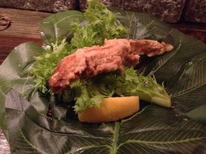 意外なことに味は白身魚のような上品な味わいで美味しい! サクッとした衣と素材そのものを感じさせるシンプルな味付けもいい。骨があるが、やわらかいのでそのまま食べられる。