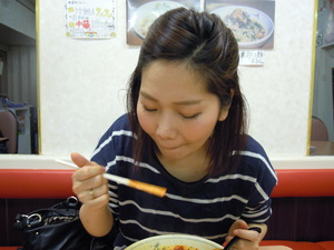 咳き込み防止のため、すすらずに口へ運ぶ。