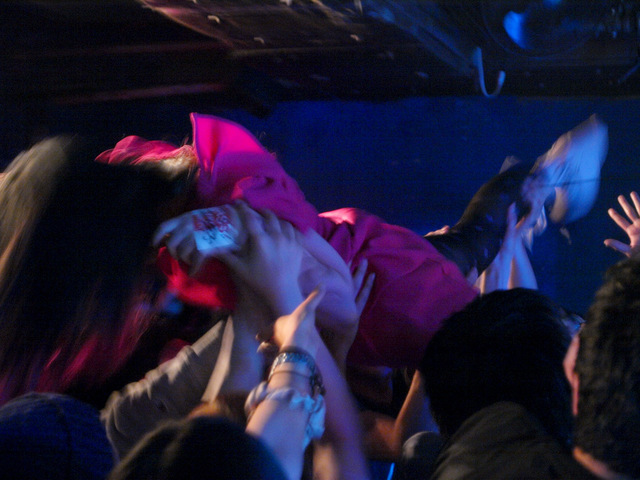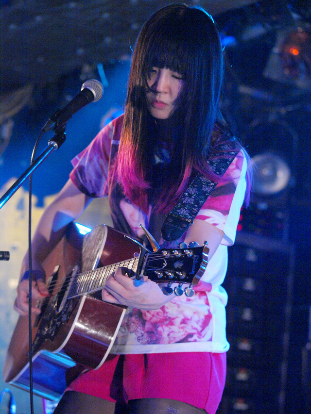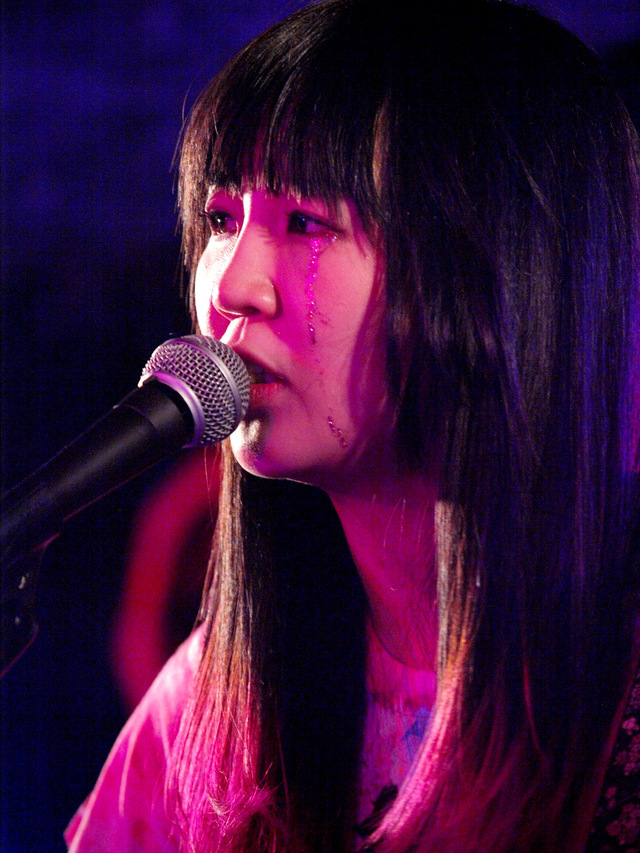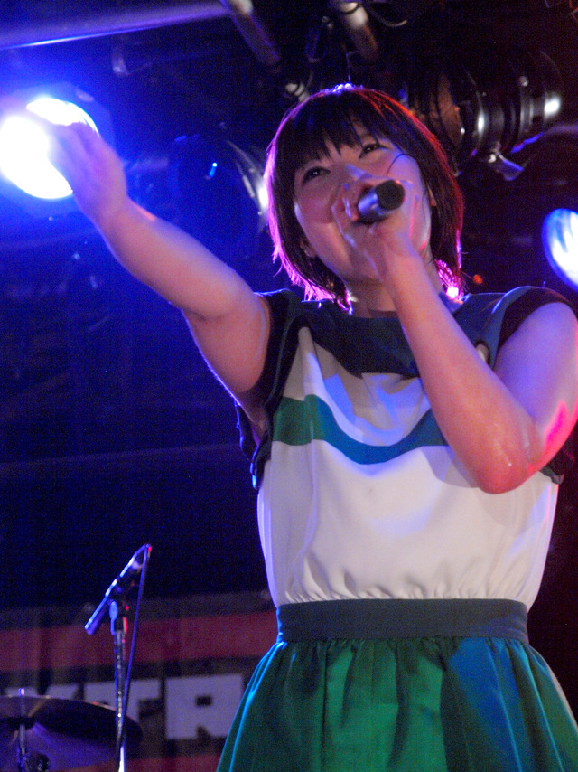 続く登場はソロシンガー「大森靖子」さん。お噂はかねがね聴いていましたが、ライブを拝見するのは初めてでした。いきなり『ミッドナイト清純異性交遊』でスタート!そしていきなりフロアにダイブ&サーフ!うおお激しいッッッ!!!そこから一転してアコギ一本と歌声でのステージングを見せてくれたり、照れながらのトークがなんだかかわいらしい物販告知をしたり、確かにこの方すんごく刺激的!