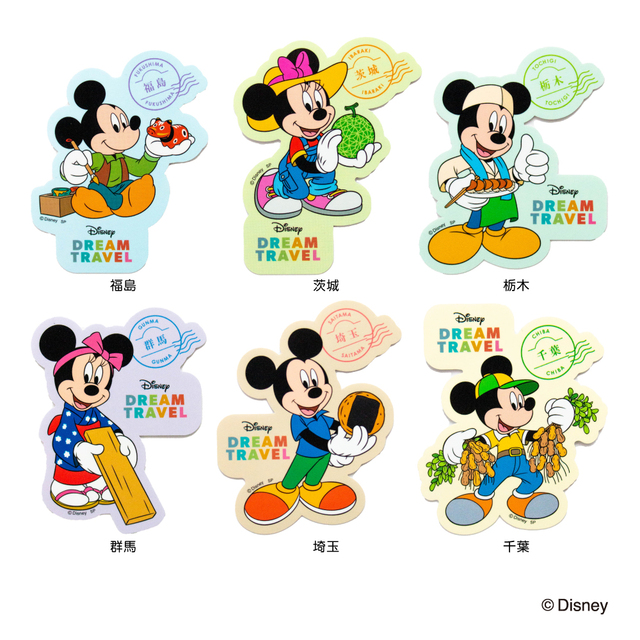 「ミッキー」と「ミニー」が日本全国を飛び回る「Disney Dream Travel」商品で、47都道府県ごとに異なるデザインを使用。