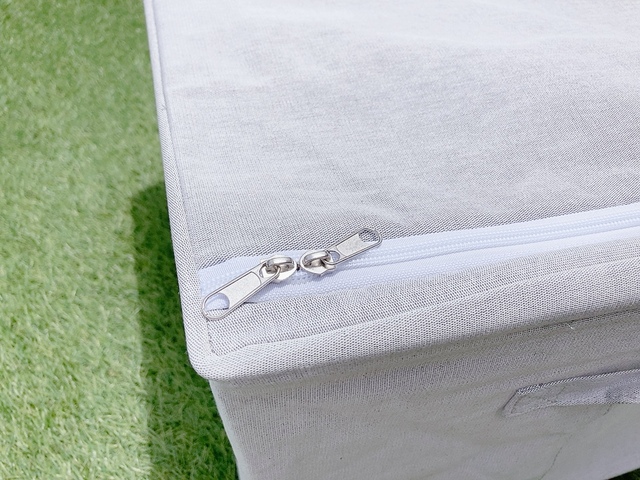 見た目は普通の軽い布製ボックスですが、中にワイヤーが入っていて自立します。上に物を置いても大丈夫!