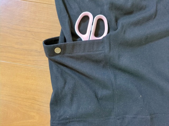両サイドにスナップボタン付きの大ぶりのポケットが配置されていて、ガーデニング作業用の手袋やハサミなども収納可能です。外に出るたびに虫よけスプレーをしたり、蚊取り線香を焚いたりする手間やにおいがないのはうれしいですね!