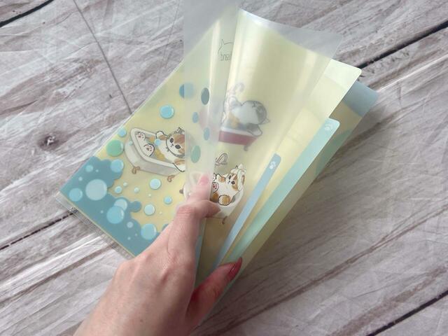 以前発売されていたmofusandの3ポケットのクリアファイルはA6サイズでしたが、今回はA5サイズで一回り大きくなっての登場です。