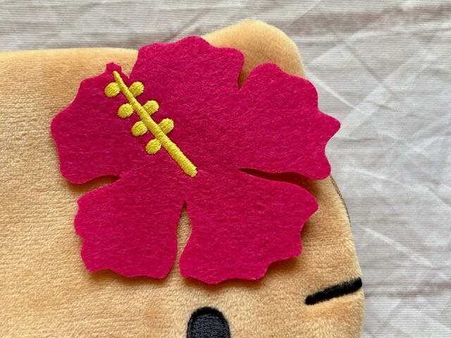 その名のとおり、キティちゃんのお顔の形のダイカットポーチで、小麦色の肌に日焼けしたキティちゃんがお耳にハイビスカスをつけておりとってもキュート…!