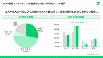 一緒に海外旅行に行く相手では、「友人や恋人」と回答した人が47.4%と最多でした。