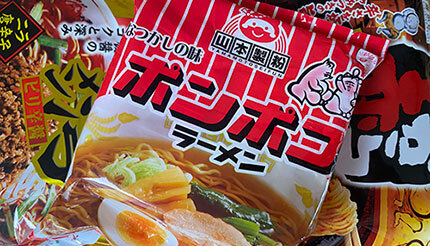 最初に紹介するのは、大正5年に愛知県豊橋市で誕生した山本製麺が昭和39年から発売し、現地を中心に今なお愛される「ポンポコラーメン」。ご当地ラーメンのインスタント版ではなく、インスタントラーメンがご当地グルメという、いつもと逆のパターンだ。