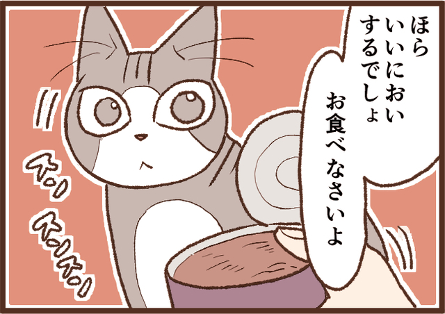 ちゅ~るや猫缶は何度も目の前に持って行ったことがあるのですが、本当にこういう感じで顔を背けてしまうという……。