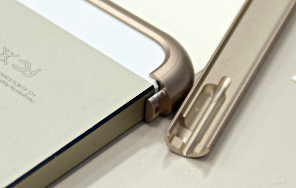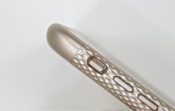 新製品「Duralumin Bumper Quattro」。側面には凹凸のディンプル加工が施されており、片手で持った時でも高いホールド感を得られます。なお、素材はこちらも超々ジュラルミンで総重量はわずか17グラム。こちらも全て日本製です。