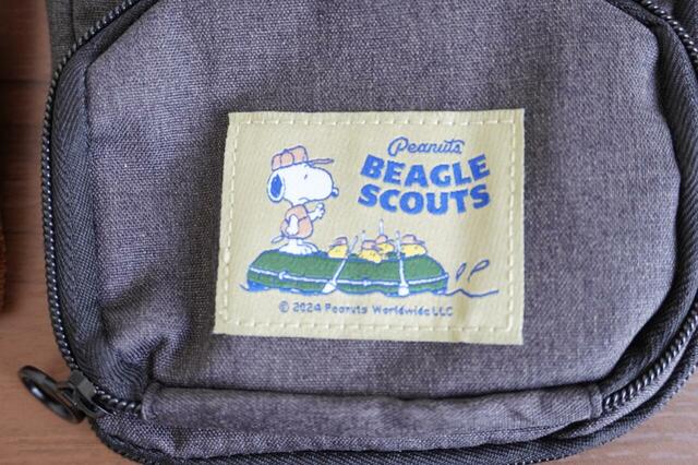 中央のタグに描かれているのは、スヌーピーがウットストックとその仲間を引き連れて探検に行く「ビーグル・スカウト」です。