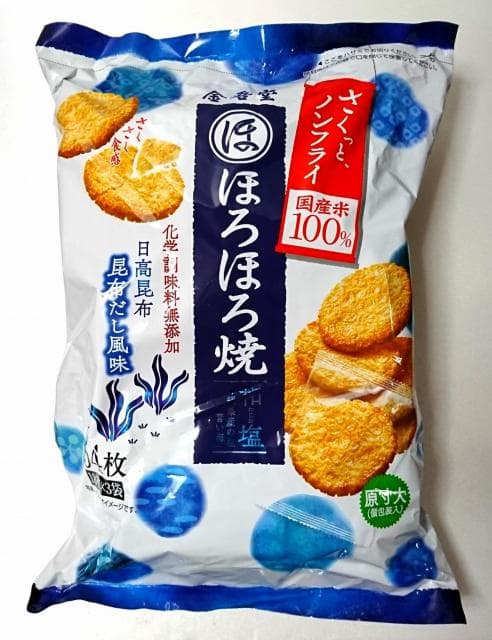 この「ほろほろ焼 和塩」は、国産米を100%使用したノンフライ&化学調味料無添加のせんべい。サクサクとした軽い食感がやみつきになる一品です。
