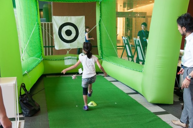 日本マクドナルドのブースではボールをキックし、そのスピードをスピードガンで測定。スピード×10円が、日本マクドナルドが支援する「ドナルド・マクドナルド・ハウス財団」へ寄付されるというものです。当日は大人137名+子供128名の計265名と、老若男女が参加。チャリティ・キック募金額は116,250円となりました。北澤さんもチャレンジし、74km/hという記録でした(ちなみに最高速度は、大人97km/h、子供64km/hでした)。