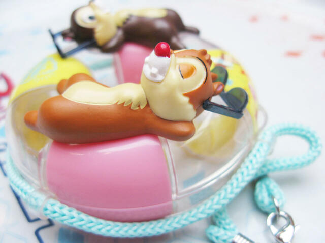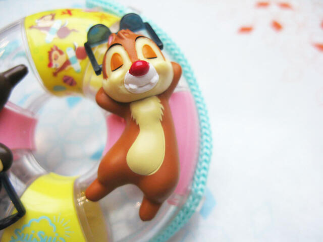 浮き輪の上でリラックスしているチップ&デールがキュートなミニスナックケースです。