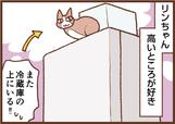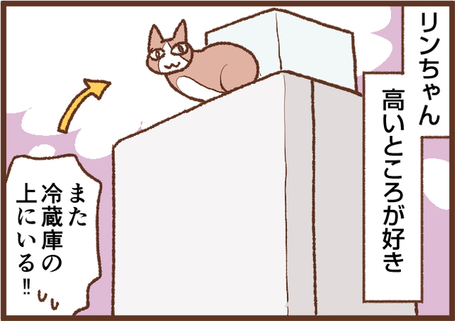 我が家では高いところというと、この冷蔵庫の上ぐらいしかないのですがここは基本的にはリンちゃんしか上らず、そして家の中ではリンちゃんが一番強いので(喧嘩に強いとかではなく、怖い)、他の猫はリンちゃんのテリトリーだと思っているようで寄ってきません。