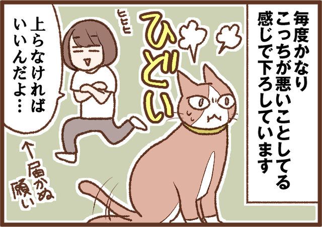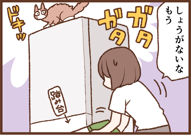 高いところに上って下りられなくなる猫というのは、世界中の動画でしょっちゅう見かける光景ですが(そして消防士さんなどが下ろしてくれている)、リンちゃんの場合は冷蔵庫だし、毎度下りられなくなっているので、どうして毎回上ってしまうのだろう……とたまに不思議に思っています……。