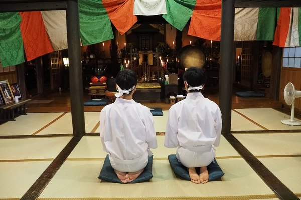 住職が太鼓を打ち鳴らし、祈祷が始まった。名前と住所を読み上げられ、滝行を受けることを不動明王に報告する。このへんで、やっと「この後、滝に打たれるんだな」という実感が湧いてきた。それくらい、滝行は非日常のイベントなのだ。