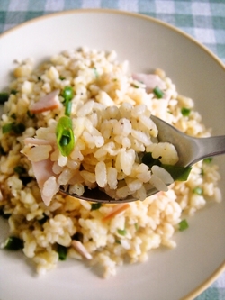 ⇒硬めに炊いたごはんや、冷凍ごはんをレンジで温め直したものを使う。