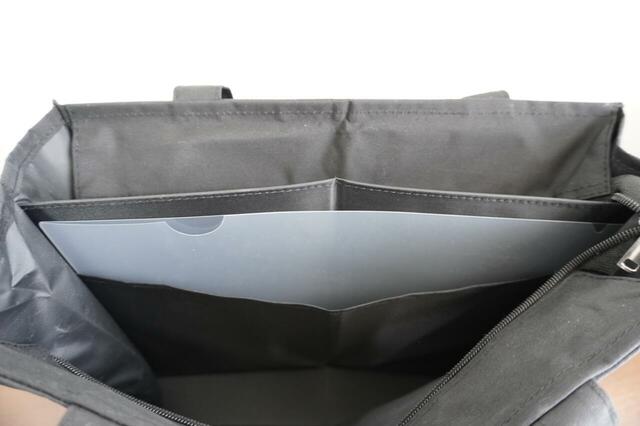 片側にはA4のクリアファイルがぴったり入るポケット、もう片側には2つのオープンポケットがついています。