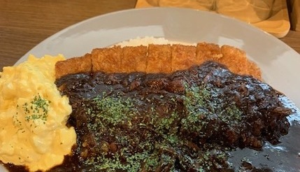 神戸『元町欧風カレー タンガロンガ』の神戸ポーク・プレミアムカツカレー(1200円)に、まろやかなタルたま(150円)を。