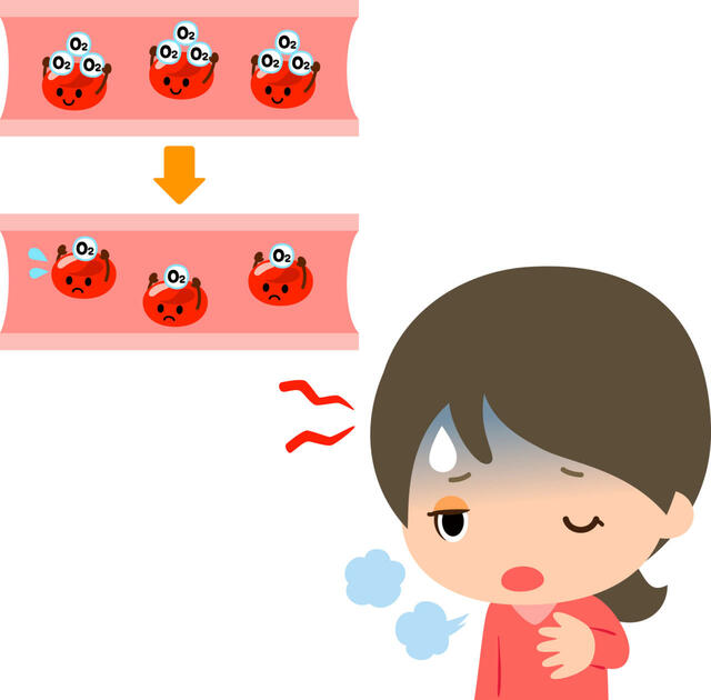 赤血球(ヘモグロビン)は酸素を全身に運ぶ働きをするため、減少すると体内が酸欠になり、さまざまな不調を引き起こします。