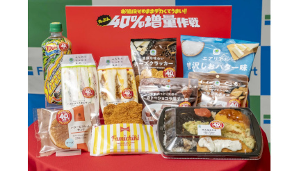 このほか、4層形状のコーンスナック「エアリアル贅沢しおバター味」(価格は150円)、ガトーショコラ風のひとくちチョコレート「しっとり食感のガトーショコラ風チョコ」(同150円)も増量。この2商品はなくなり次第、終了となる。
