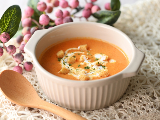 蟹の旨味が凝縮された、濃厚でクリーミーなビスクスープは、そのまま味わうのはもちろん、パンにディップしても美味しく楽しめます。