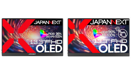 JAPANNEXTから、フルHD対応の13.3インチ有機ELパネル搭載モバイルディスプレイ。タッチパネルモデルも用意