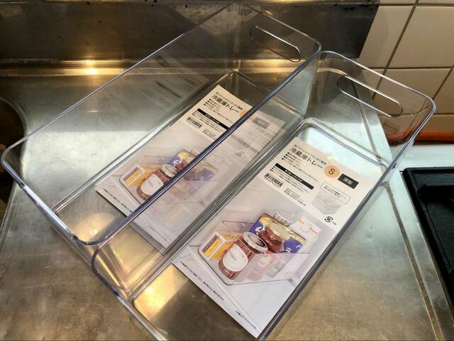 商品にもよりますが、このトレーにはヨーグルトや納豆がぴったりフィットしました! 透明なので中身の数や賞味期限もすぐに確認でき、取手がついているので奥にしまっても取り出しやすいです。