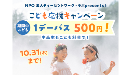 「こども応援キャンペーン」期間中は、通常は大人料金の中学生・高校生を「子ども」とし、子ども(4歳~高校生)なら前売り・当日券ともに1デーパスが500円となる。